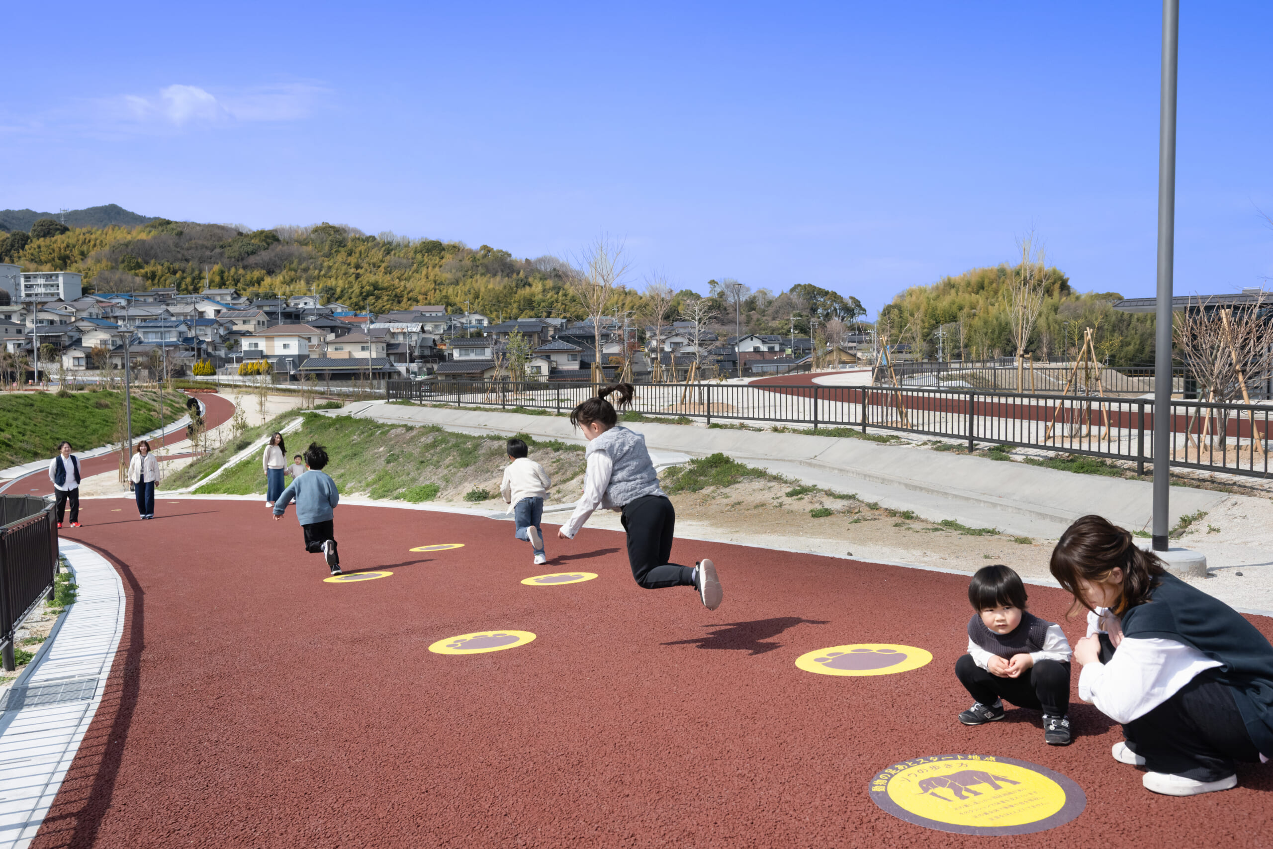 高低差を利用した地形に、四季の彩りが楽しめる木々を植栽し、遊歩道を歩きながら散策ができます。